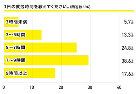 ■フリーランスの1日の就労時間は約7-9時間で、一般的な会社員と大きく変わらず