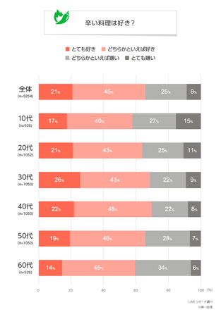 このたびLINEリサーチでは、日本全国の男女を対象に、辛い料理が好きな人の割合や、好きな辛い料理について調査しましたので、その結果をお知らせいたします。