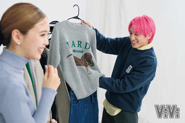 即興で組んだ理想のコーデでは、兼近さんが組んだ直球のモテコーデにニコルも恥ずかしくなり苦笑い。焦るかねちに対し「どんなコーデでも着るから大丈夫! 好きに組んでいいよ」とニコルの優しいアドバイスも。それぞれがどんなコーデを組んだか、誌面をお楽しみに。