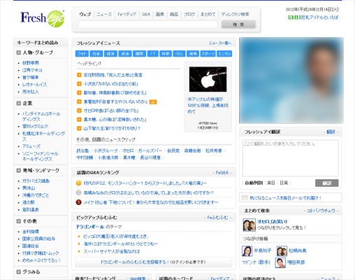 「フレッシュアイ」は、ビジネスマン向けの情報検索サイトです。最近の話題、出来事をニュース記事や各種DBから収集・整理して、有用なデータ集としてユーザーに提供しています。