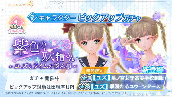 『BLUE REFLECTION SUN/燦』イベント「紫色の妖精さん ~ユズとライムの悩み事~」を開催!司城夕月がプレイアブルキャラクターとして参戦!