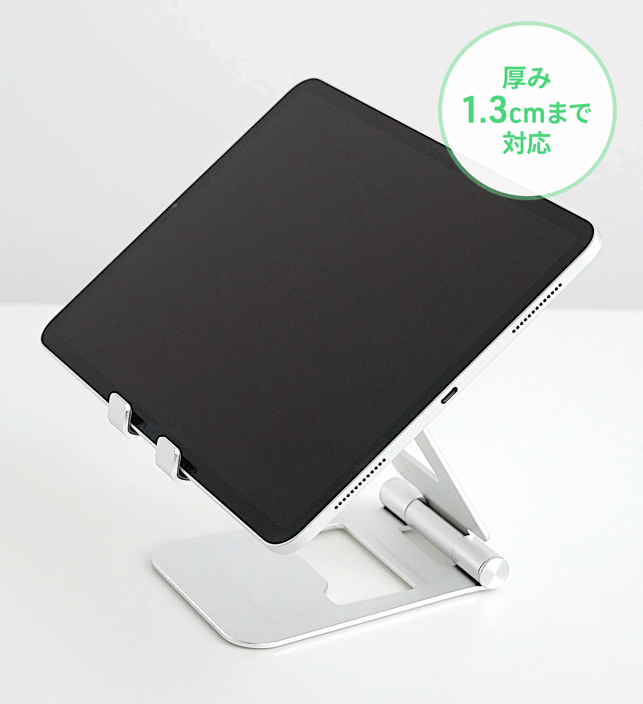 掲載ページ折りたたみ式 タブレットスタンド アルミ製 無段階 角度調整 2関節 iPad Switch シルバー