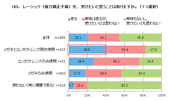 ■ メガネ使用者よりもコンタクトレンズ使用者の方が、レ―シックへの関心度が高い