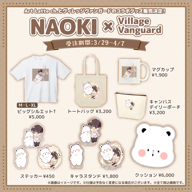 2024年3月29日(金)より、Toutubeで大人気のArt Latte ch.【NAOKI】のヴィレッジヴァンガード限定グッズがオンラインストアにて発売決定!!今回のコラボの為に描き下ろしていただいたイラストは必見!期間限定オンライン受注販売のみになりますのでお見逃しなく!