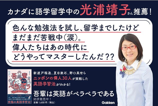カナダに語学留学中の光浦靖子さんも推薦! 『吾輩は英語がペラペラである ニッポンの偉人に学ぶ英語学習法』好評発売中
