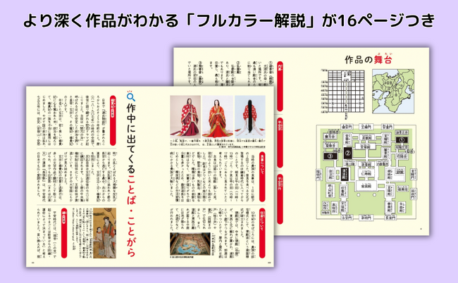 3.ふりがな&カラー解説16ページがついてくる『まんがで読破ジュニア 源氏物語』も予約開始