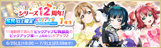 シリーズ12周年!SR以上確定ピックアップブースト勧誘〜Aqours〜1年生