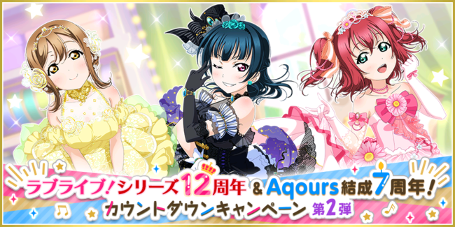 ブシモ「ラブライブ!スクールアイドルフェスティバル」ラブライブ!シリーズ12周年 & Aqours結成7周年!カウントダウンキャンペーン 第2弾開催のお知らせ
