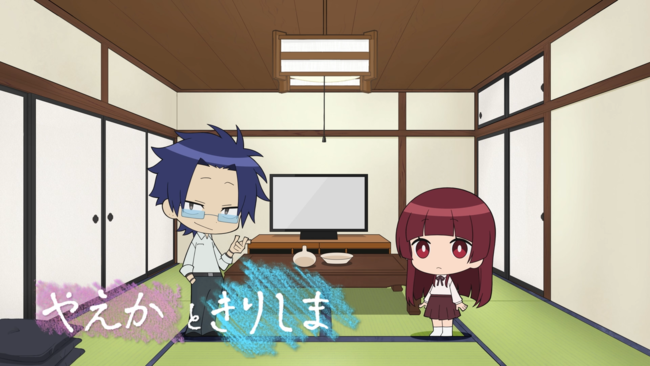 ピクチャードラマ第6話では、そわそわしながらアニメがはじまるのを楽しみにしている八重花(CV.和多田美咲)と、ちょっぴり気がかりなことがある霧島(CV. 細谷佳正)が、これからの展開について話し合います。