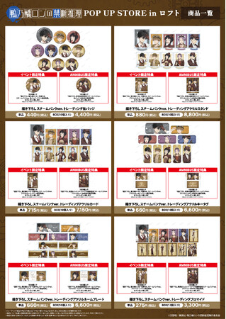 今回のイベントでは、アニメ『鴨乃橋ロンの禁断推理』の「スチームパンク」をコンセプトにした新規描き下ろしイラストを使用した新商品を多数先行販売する他、イベント限定購入特典の配布を予定しております。