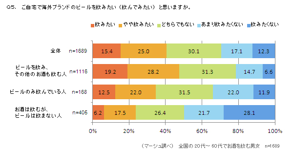 「自宅で海外ブランドのビールを飲みたい(飲んでみたい)と思いますか」と聞いたところ、