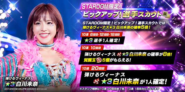 スターダムから、★3白川未奈が登場!STARDOM限定ピックアップ選手スカウトを開催!