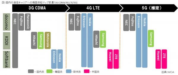 ・国内モバイルキャリアが採用するインフラベンダー、世代交代の度に海外勢にスイッチ