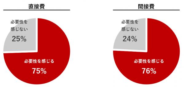 75%が直接費に関する業務プロセスの改善に必要性を感じると回答し、それとほぼ同数の76%が間接費に関する業務プロセスにも改善の必要性を感じると回答しました。経済環境の変動の多い昨今、中堅中小企業では、商品やサービスの開発・販売に直接紐づく直接費同様、経費精算や請求書管理といった、本業との関連の薄い間接費に関する業務プロセスについても課題意識が高く、改善の意向が強く表れています。