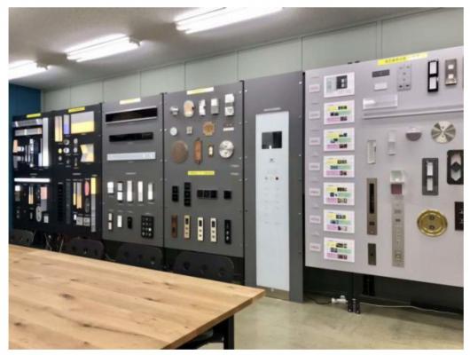 また、これまで当社が日本と中国で手掛けたエレベーターボタンやホールランタンなどの意匠品を構造別や著名ビル別などで分かりやすく展示し、最新トレンドから時代と共に移り変わってきた意匠器具の歴史まで分かるスペースになっています。