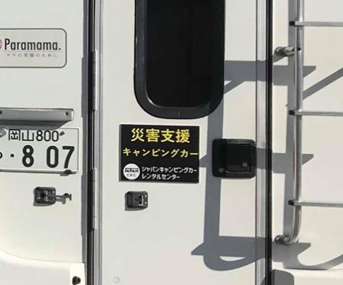 7月30日より8月31日の1か月間、通常時は東京、岡山でレンタカーとして貸し出しているキャンピングカー計2台を『まび記念病院」、『サテライト やた」に各1台ずつ設置。猛暑の中、復旧作業に従事するボランティアスタッフの救護所として活用いただきます。