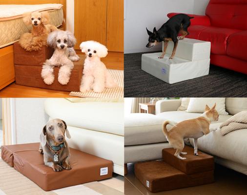 中身は適度なクッション性を持つソフトウレタンで、足腰の弱い小さな愛犬たちが使いやすいよう考慮しました。