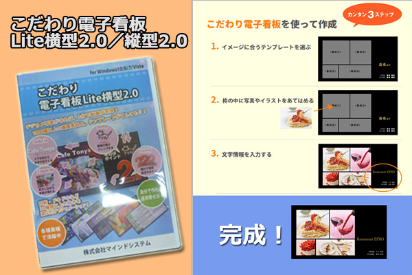 ■「こだわり電子看板Lite(縦型2.0)(横型2.0)」ソフトについての詳細は、こちらをご覧下さい。