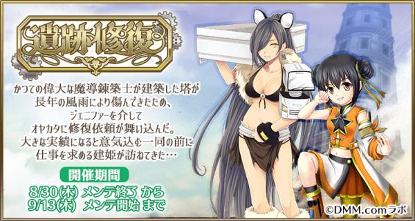 2018年08月30日(木)定期メンテナンス終了後よりイベント「遺跡修復」を開催いたします。