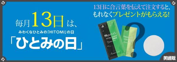 プロ向け美容材料の通信販売サイト「美通販」では、「美通販」のフリーダイヤル 0120・389713(みわくなひとみ)に因んで、毎月13日を「ひとみの日」として、キャンペーンを行いたいと考え、