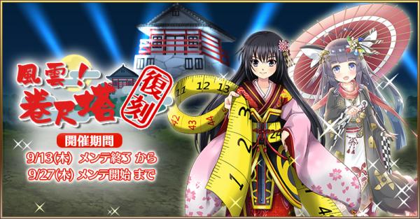 2018年09月13日(木)定期メンテナンス終了後よりイベント「復刻:風雲!巻尺城」「ニパ子のステップアップ講座」を開催いたします。
