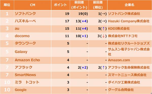 アンケートは2018年8月30日〜2018年9月5日までの期間で、2018年9月現在放送されているCMを対象にした調査を基にランキング形式にてまとめたものです。