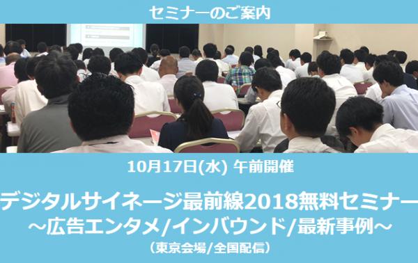 「デジタルサイネージ最前線2018〜広告・エンタメ・販促/インバウンド/最新事例〜無料セミナー」(東京会場/全国配信)のご案内