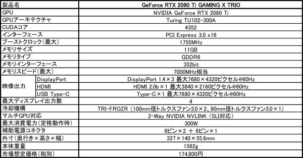 MSI、NVIDIA GeForce RTX 2080 Ti搭載OCカード「GeForce RTX 2080 Ti GAMING X TRIO」を発売