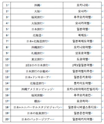 ■ 『訪日韓国人が日本へのバケーションで「NAVER」検索するトレンドワードTOP20』