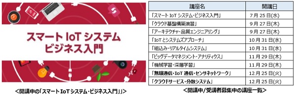 9月27日(木)15時より受講者募集を開始する「無線通信・IoT通信・センサネットワーク」は通信・物理領域、「クラウドサービス・分散システム」はアプリケーション領域を学ぶ講座です。