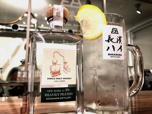 長濱ニューメイクで最もピートの効いた『長濱ニューメイク59° ヘビリーピーテッド』を炭酸で割り滋賀県特産の獅子柚子で風味づけした一品。ふわっ と香るピートの風味と余韻が絶妙で料理との相性も抜群です。「長濱ハイ」は長浜浪漫ビールにて1杯 550円+税でご提供しています。お近くにお越しの際には ぜひともお試し下さい!