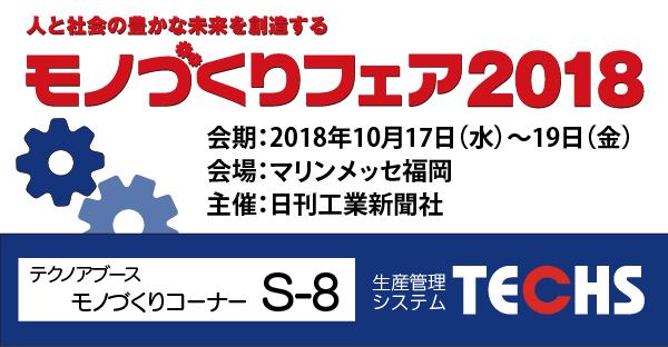 株式会社テクノアは、10月17日(水)〜19日(金)に、マリンメッセ福岡で開催される「モノづくりフェア2018」へ出展いたします。