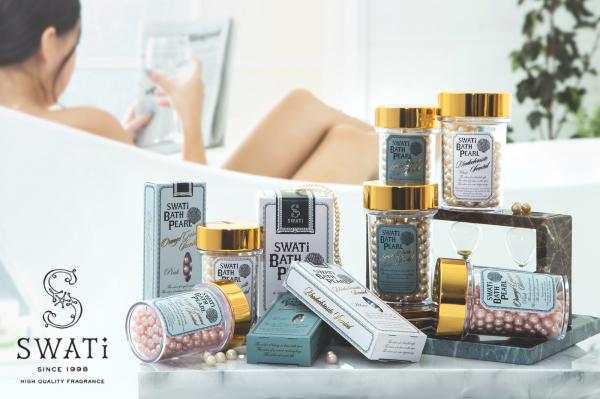 パールをモチーフにしたオリジナルの入浴剤「SWATi BATH PEARL」は、選べる3サイズで贈り物にもぴったりです。