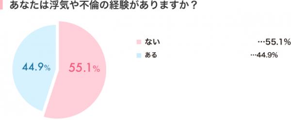 アンケート回答女性356人のうち、約45%(160人)の方が浮気、不倫経験ありと回答しています。