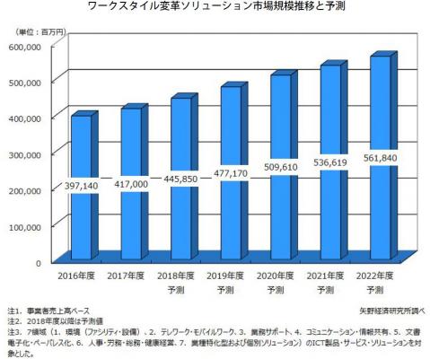 【矢野経済研究所プレスリリース】ワークスタイル変革ソリューション市場の調査を実施(2018年)-2018年度の国内ワークスタイル変革ソリューション市場は4,459億円と予測-