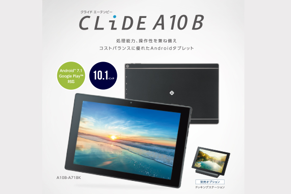 テックウインド株式会社(本社:東京都文京区、代表取締役社長:王 夢周、以下 テックウインド)は、多くのお客様の声を最大限に反映させたオールマイティ型10.1インチ最新タブレット「CLIDE(R) (クライド) A10B」を発売します。本製品は、Android 7.1を搭載し、Google PlayTMにも対応しています。汎用性とコストパフォーマンスに優れているため、大量導入を検討されている法人様にも最適なタブレットです。2018年10月18日(木)より出荷を開始いたします。