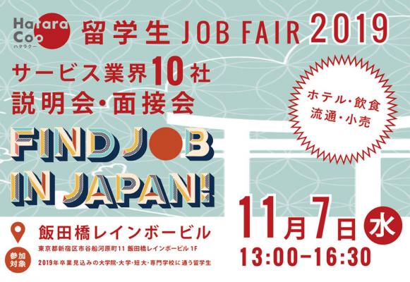 [留学生採用支援イベント] サービス業界限定!留学生と日本企業を繋ぐ HataraCoo「留学生JOB FAIR 2019」のご案内