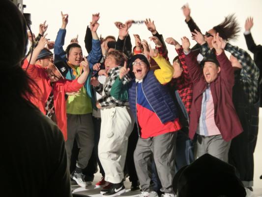 これからビッグなオトコたちを率いてダンスを披露するクライマックスシーンの撮影です。総勢21名のビッグなオトコが、 本CMのキーワード“BIG STYLE , BIG SMILE.”をパワフルに演じます!