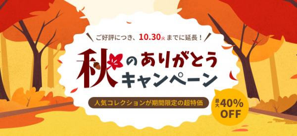 【大好評につき期間延長!】最大40%OFF!!!あのウェディングコレクションも初登場!秋のありがとうキャンペーンで期間限定の超特価!