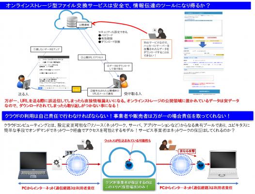 また、クラウドコンピューティングとは、設定変更可能なITリソース(ネットワーク、サーバ、アプリケーション)からなる共有プールであり、ユビキタスに簡単な手段でオンデマンドでネットワーク経由でアクセスを可能とするモデルであるが、クラウドに接続するコンピュータからインターネット(通信経路)は契約者である利用者が全て責任を持たなければならない。通信経路には実データが流れているので、常に窃取や盗聴される危険性があることを認識しなければならない。
