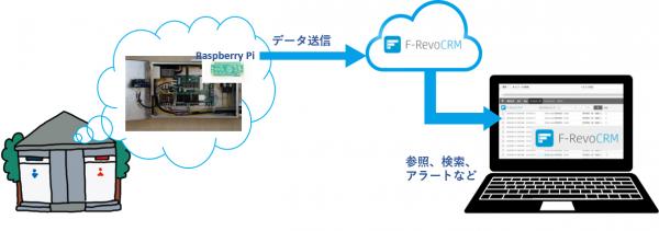 バイオトイレは遠隔地などに設置することが多いため、想定外のトラブルが多く、メンテナンスに手間とコストがかかっていました。そこで、バイオトイレに取り付けたデバイスから発信される情報を、F-RevoCRMで管理することで、使用状況をリアルタイムに監視し、適切なタイミングでメンテナンスするという、IoTの仕組みを作りました。