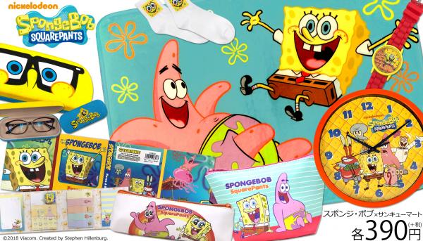 店内全品390円(税別)でおなじみのサンキューマートでは、四角い海綿くん“スポンジ・ボブ”とその仲間たちが巻き起こすユニークな海底ワールド「スポンジ・ボブ」とのコラボ商品(ステーショナリー・Tシャツ・ランチグッズ・アクセサリーなど)を大好評発売中!