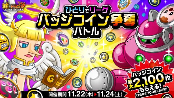 『城とドラゴン』で「ひとりでリーグ バッジコイン争奪バトル」が11月22日(木)より開催!リーグに挑み、バッジコインをGETしよう!