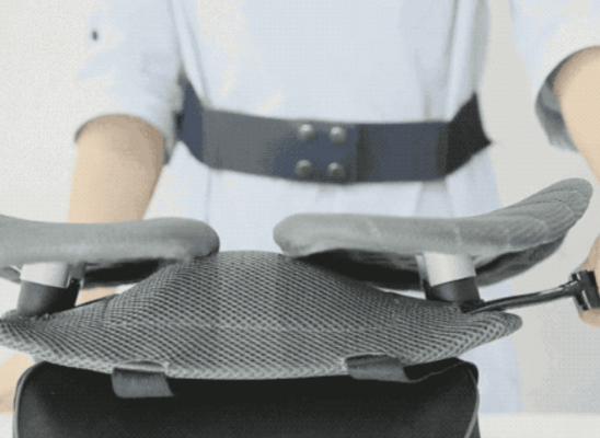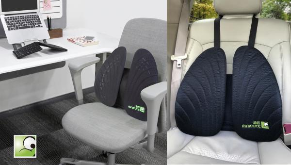 Mini Cuteはオフィスチェアなどいつも使っている椅子の背に取り付けるだけ。人間工学デザインのウエストパッドが腰にしっかりフィットし身体全体をサポートしてくれます。