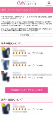 コズレ「抱っこひも 口コミランキング(β版)」をリリース