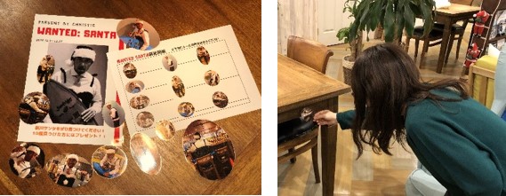 オフィス内に代表の新川がサンタに変装したシールを貼り、10個見つけた参加者にはお菓子を