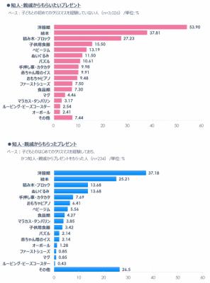 ベース: 子どもとの初めてのクリスマスを経験しており、かつ子どもにプレゼントをした人 (n=253) / 単位: %
