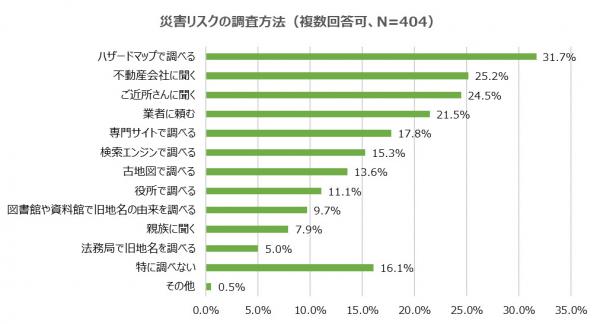 「災害リスクの調査方法トップ3は『ハザードマップで調べる』『不動産会社に聞く』『ご近所さんに聞く』」