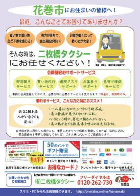 < 岩手県花巻市 ワンタク・見守りタクシー 二枚橋タクシーサービスサイト>