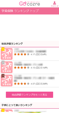 子育てに楽しさと新たな価値を提供する株式会社コズレ(本社:東京都千代田区、代表取締役:田中 穣二郎、以下コズレ)は、子育てナレッジシェアメディア「cozreマガジン」に「学資保険 口コミランキング(β版)」を本日リリースしました。